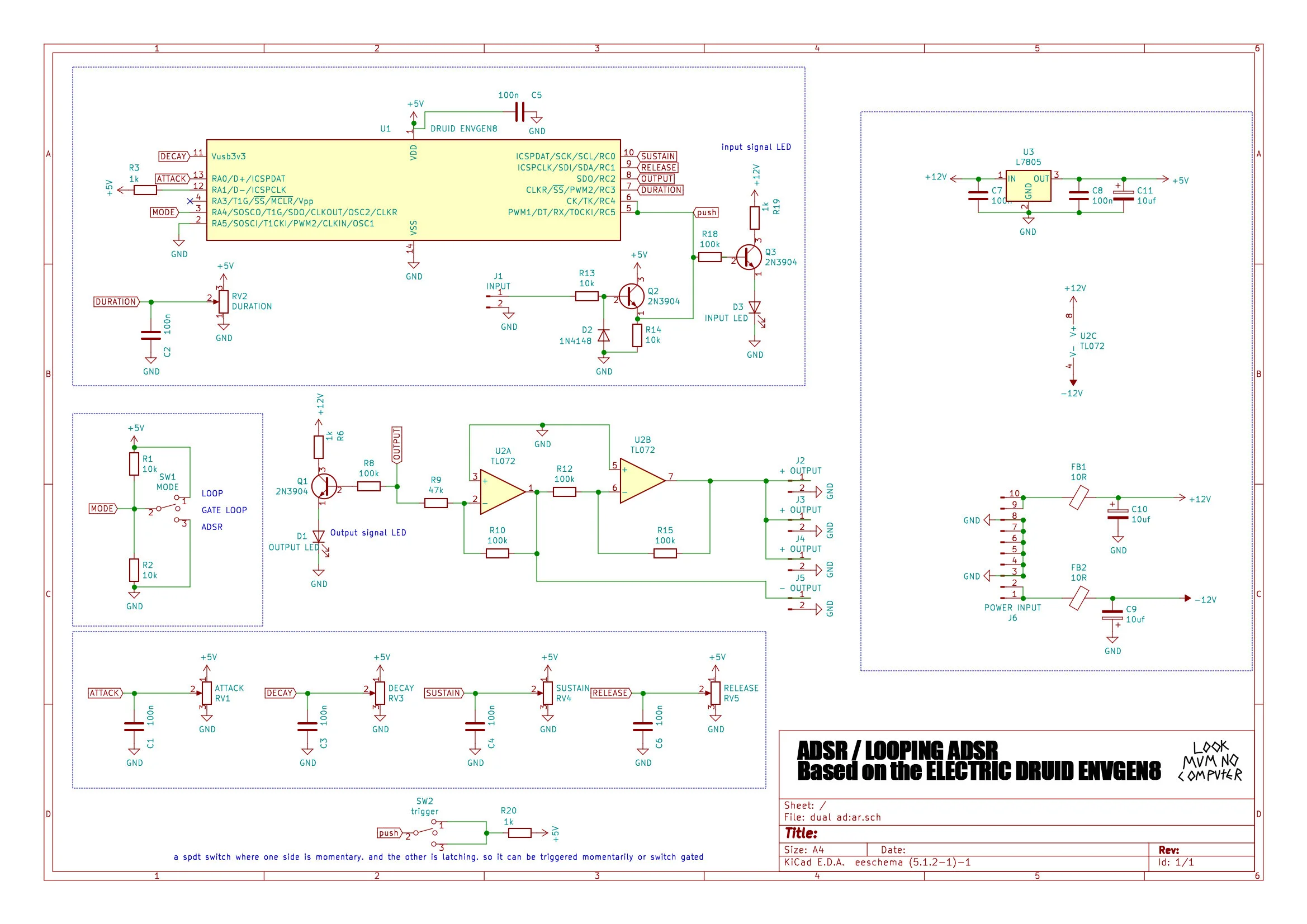 Envelope Generator Schematic / Lmnc Adar Easyeda : The most common kind of envelope generator has four stages:. This envelope generator is a fantastic little extra to put in your synthesizer. Attack, decay, sustain, and release (adsr). The synthrotek adsr is a small and simple envelope generator with some very useful features. My first envelope was a traditional adsr envelope, adapted from yusynth's design which uses a (7)555 timer as the core logic element. Recently, in need of more envelopes, i decided to make a proper pcb layout, and revisit the envelope design in the process.